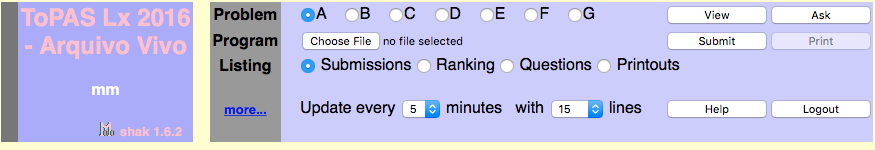 Ver o significado das mensagens do Mooshak (entre outra informação): Help